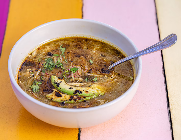 Roasted Chicken Poblano Soup back on the menu